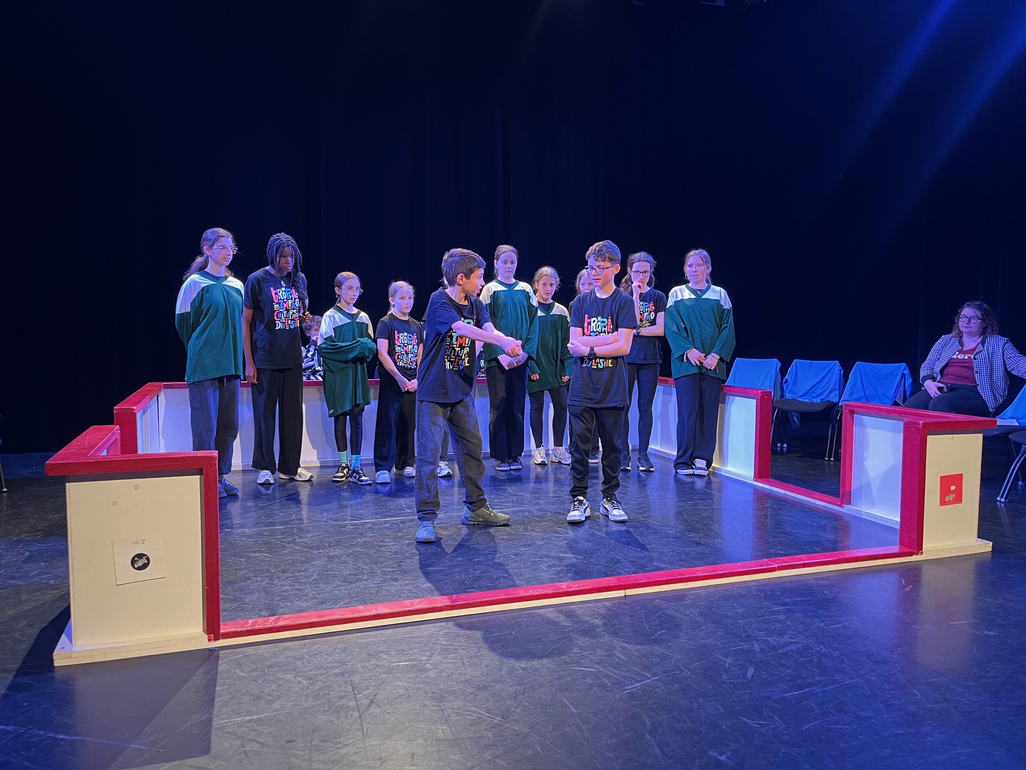 Les sept élèves sélectionnés pour le match d'Impro Inter Collèges ont rencontré les élèves du collège Jean Jaurès de Colomiers, mardi 24 mars à l'Espace Roguet de Toulouse.